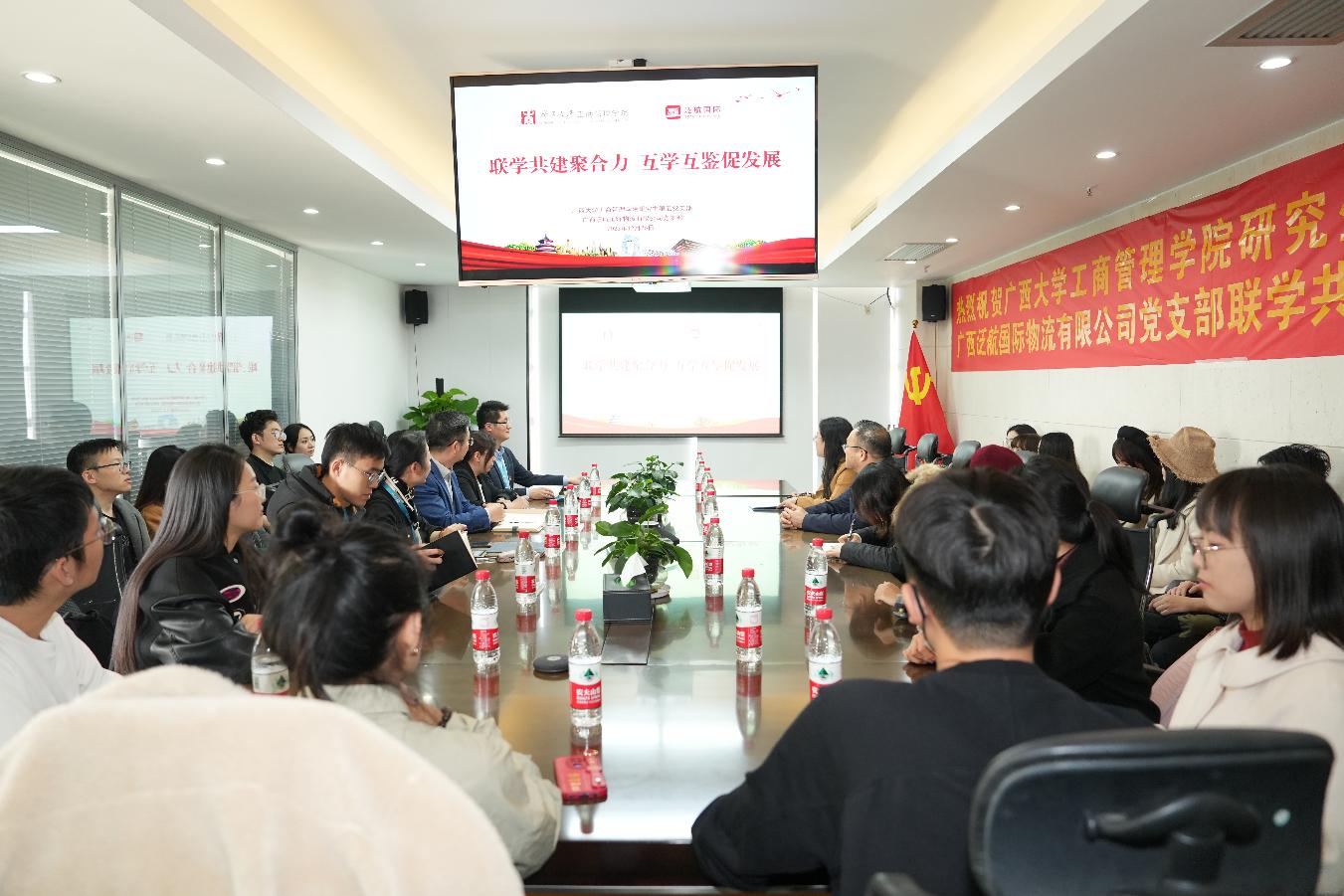 研究生第五党支部赴广西泛航国际物流有限公司(以下简称“泛航公司”),探访民营企业发展环境,了解现代民企发展现状及趋势,并与该公司党支部开展联学共建活动。学院党委书记罗诚,泛航公司党支部书记、董事长、换妻游戏