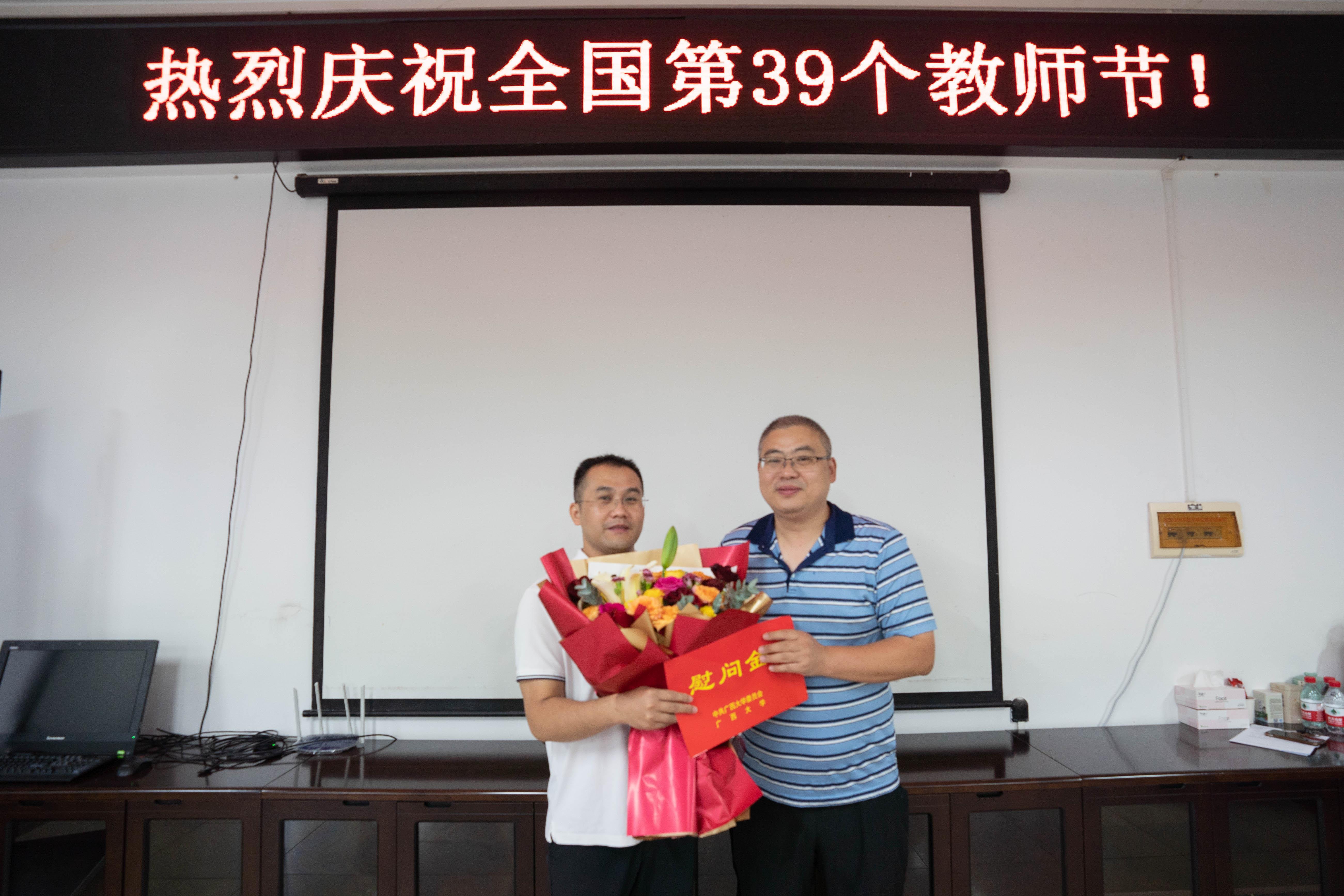 院长朱帮助代表学校看望慰问教师代表阎世平、朱少英、黄文远三位老师,为他们送上了鲜花、节日祝福和慰问金,传达学校、学院对广大教职员工的关心厚爱。