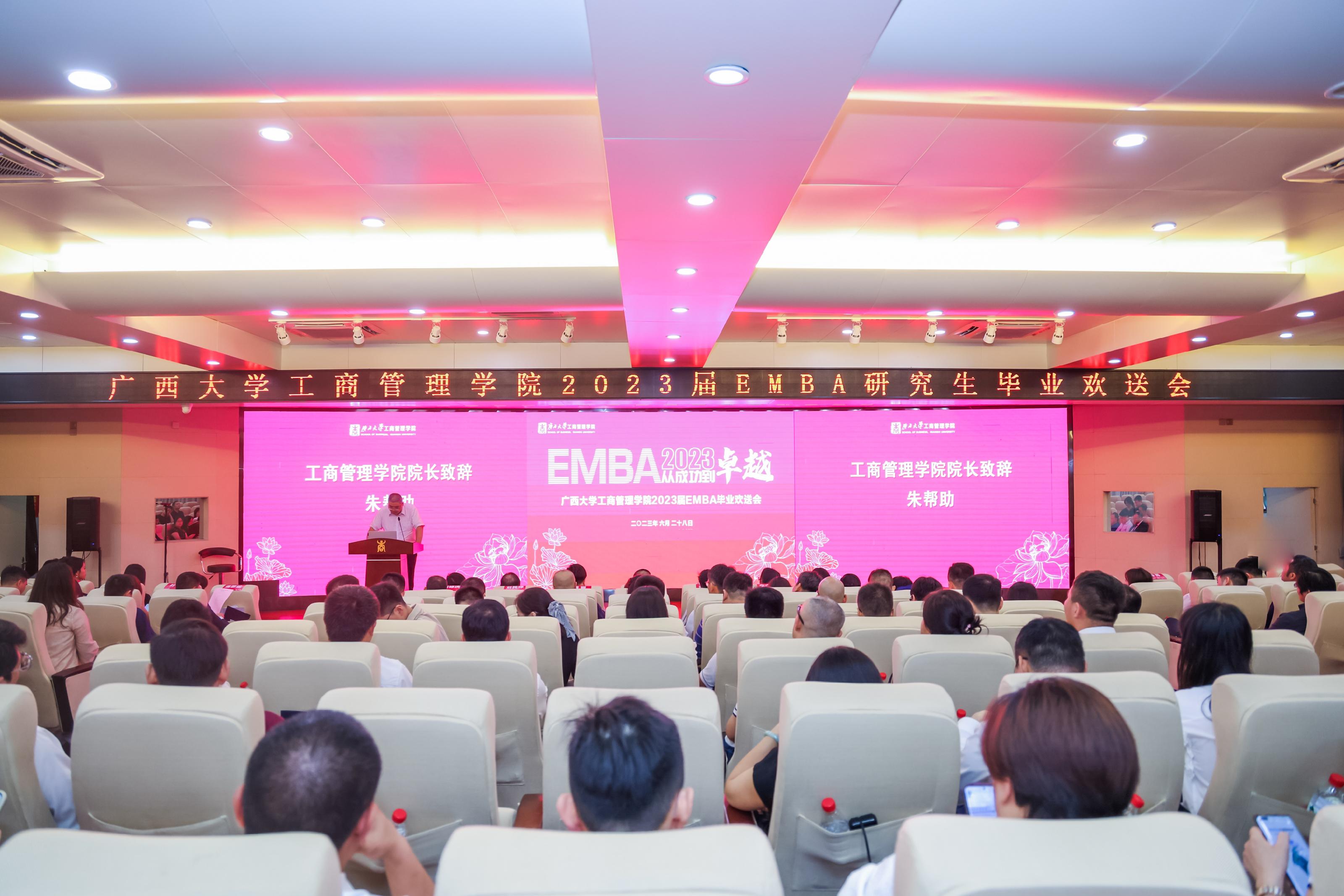 2023届EMBA毕业生欢送会在学院128报告厅举行。学院全体领导、导师代表、教师代表与2023届EMBA毕业生欢聚一堂,抒离情、怀憧憬。