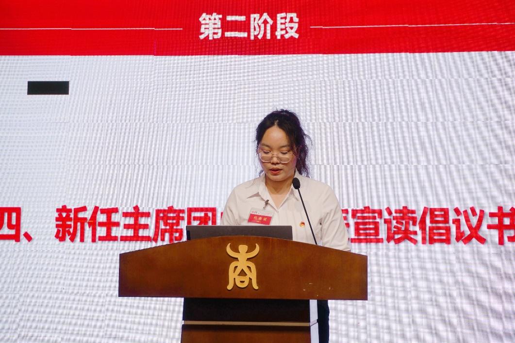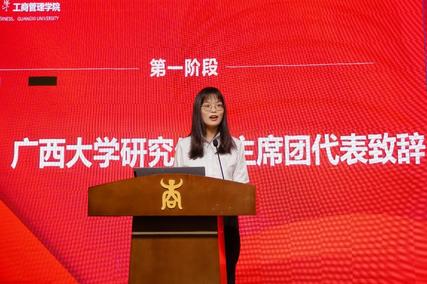 学院第二届研究生主席团党员代表翟艳洁宣读倡议书,向同学们发出倡议:强化思想建设,深化思想认识;扎根商科之学,投身一流建设;不忘初心使命,勇当时代新人。
