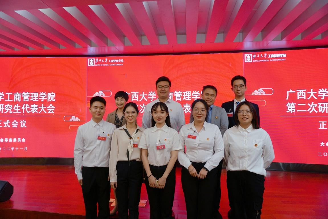 第二次研究生代表大会在学院128报告厅召开。学校团委书记谢能重,学院党委书记罗诚、党委副书记黄晋出席会议。学院团委书记马丽娟、团委副书记岑汉成、党委组织员黄照温、学工组辅导员王乐、冯莎莎、张艳红,联驻会执行主席陈允杰、校研究生会主席团代表邹阳、经济学院/中国-东盟金融合作学院研究生会执行主席谯显迪、大会筹备委员会主席团以及学院各研究生班级学生代表参加了会议。