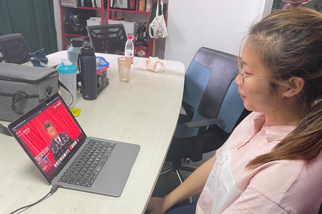 学院教学秘书、教工行政党支部预备党员梁丹丹:作为一名新时代青年,我将继续满怀对党的感恩之心,永远跟党走,不断强化自身专业技能,不断增强学习的主动性、创造性,肩负起历史使命,吃苦耐劳,增强信心斗志,在平凡的工作岗位上撸起袖子加油干,以实际行动奋力谱写全面建设社会主义现代化国家的崭新篇章。
