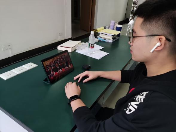 本科生第三党支部预备党员蒋荣:作为新时代的接班人,我深刻感受着当代青年生逢其时,前景光明。初心使命召唤新时代青年,我将努力提高自身素养,树立终身学习的观念,为全面建设社会主义现代化国家、全面推进中华民族伟大复兴而团结奋斗。
