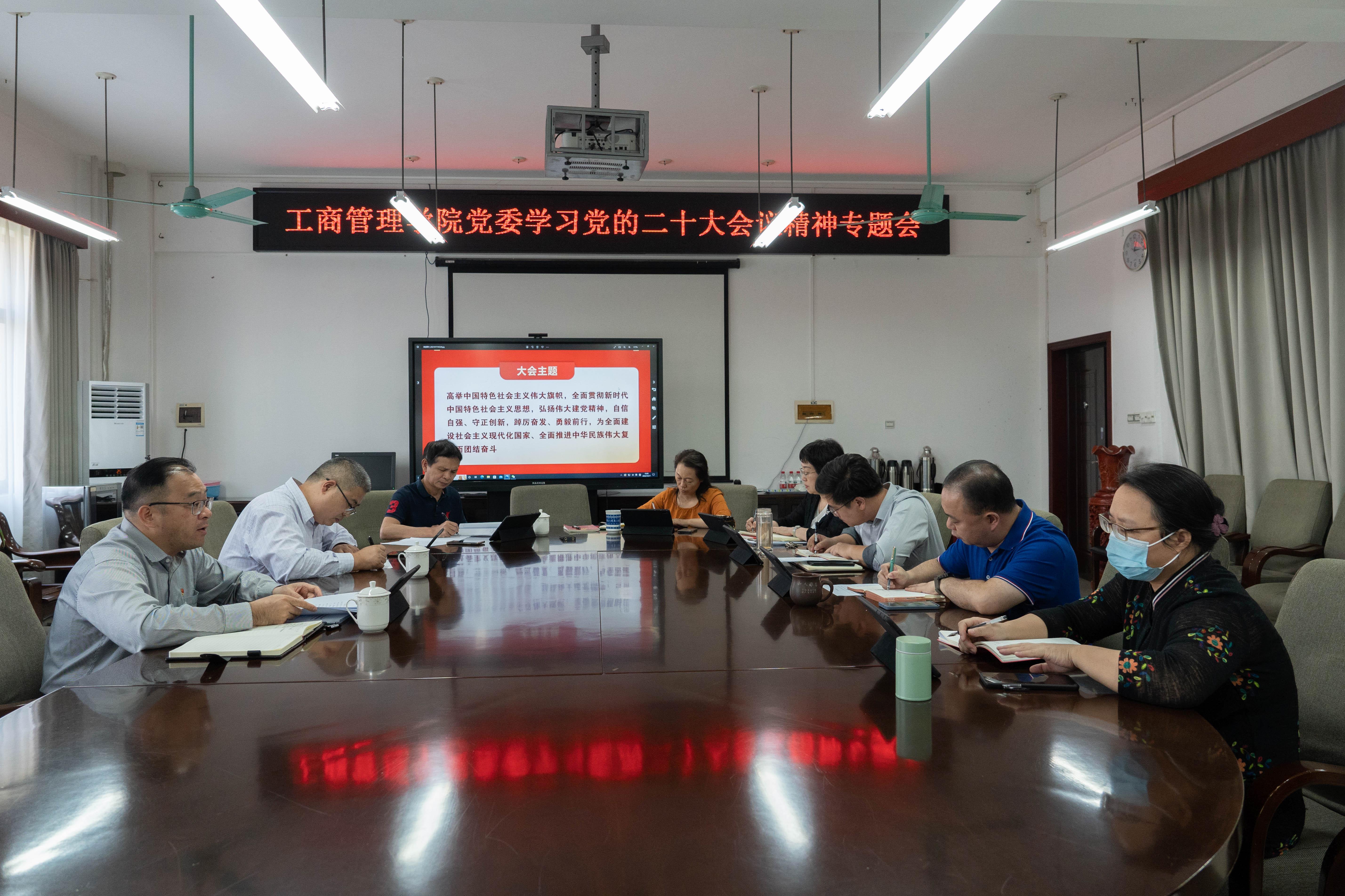 会议要求,要将学习宣传贯彻党的二十大精神作为当前最重大的政治任务,认真谋划、精心制定学习宣传贯彻落实方案,采取中心组学习、专题研讨、“三会一课”等多种形式,动员全院师生党员原原本本学、联系实际学、学思践悟学,迅速掀起学习热潮。要扎实推动党的二十大精神进教材、进课堂、进师生头脑“三进”工作。院党委领导班子成员要示范带头,先学一步、深学一层,切实把思想和行动统一到党中央决策部署上来,把学习收获体会转化为做好学院高质量发展的思路举措,真正使学习入脑入心、见行见效。