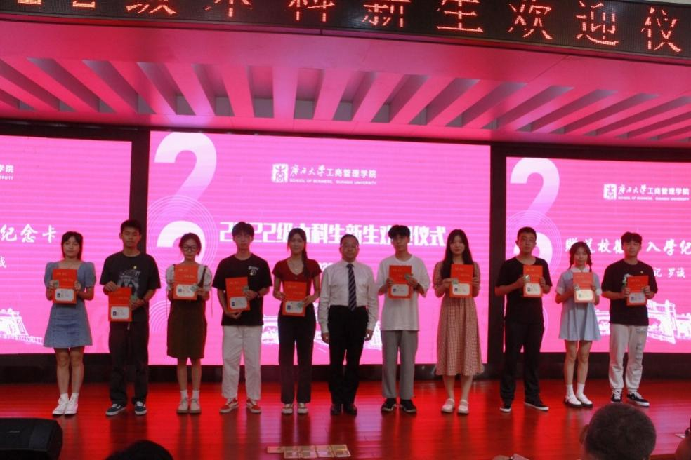 为了欢迎新生,学院特别订制了精美的入学纪念卡。每张纪念卡上记录着新生的姓名、专业、学号,及一张入学时的相片,为新生留下深刻美好的记忆。在全体新生的见证下,学院党委书记罗诚为新生代表赠送校徽、入学纪念卡,祝贺他们成为了光荣的“西大人”,希望他们践行“厚德、博学、创新、卓越”的学院价值观,在未来成就更优秀的自己。