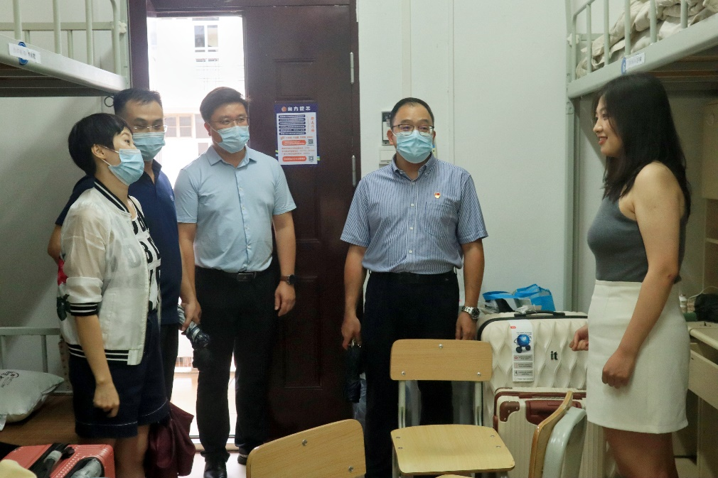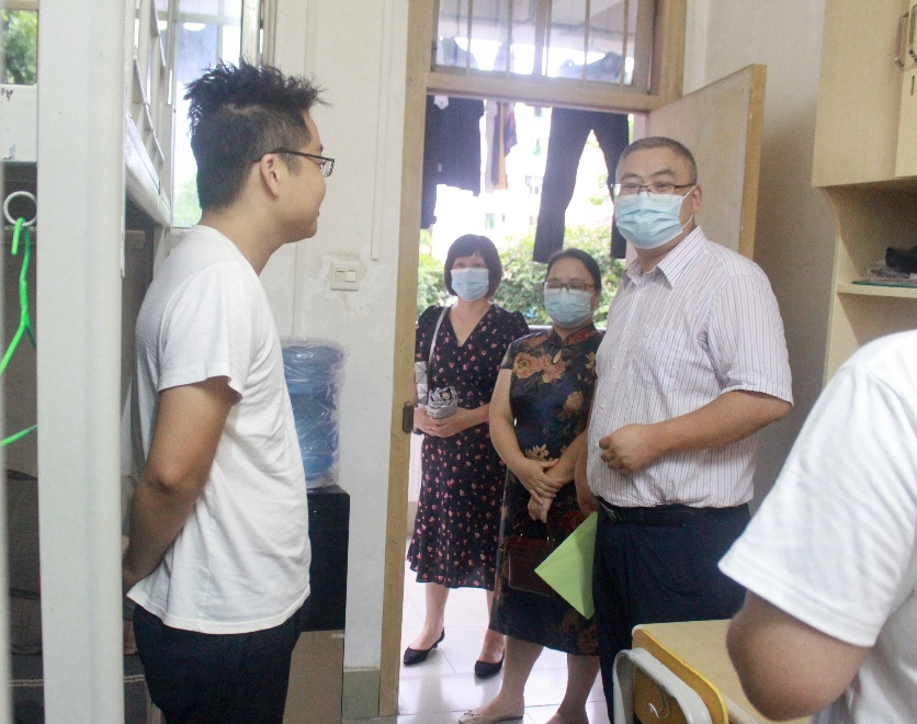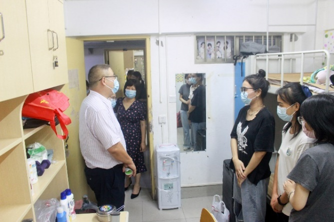 2022级新生宿舍,看望学生,让同学们第一时间感受到学校的关怀、学院的温暖。院党委副书记黄晋、副院长朱少英、研究生管理中心主任叶映、院团委书记马丽娟、新生班主任以及年级辅导员一同参加走访活动。