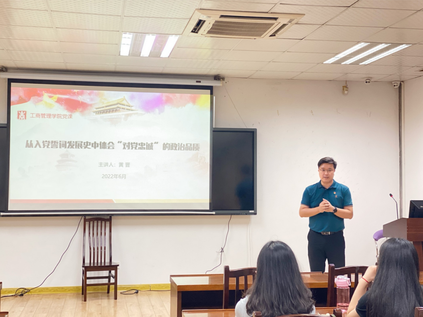 6月21日,院党委副书记、院长朱帮助为教工企管系党支部讲授“对党忠诚”专题党课,他要求教工党员立足本职工作,对党忠诚,始终保持对党的崇高理想和使命的自觉自醒,始终坚守正确的政治立场和政治追求,始终保持为党和人民事业奋斗的初心初衷和应有定力。朱帮助院长强调,目前学院处于学科建设、专业转型的爬坡阶段,学院的发展离不开全体教职工的共同努力,教师党员要在其中起到表率作用,认真落实学校、学院党委的工作部署,注重师德师风建设,践行习近平生态文明思想,加快学院的转型发展,向“双一流”建设目标迈进。