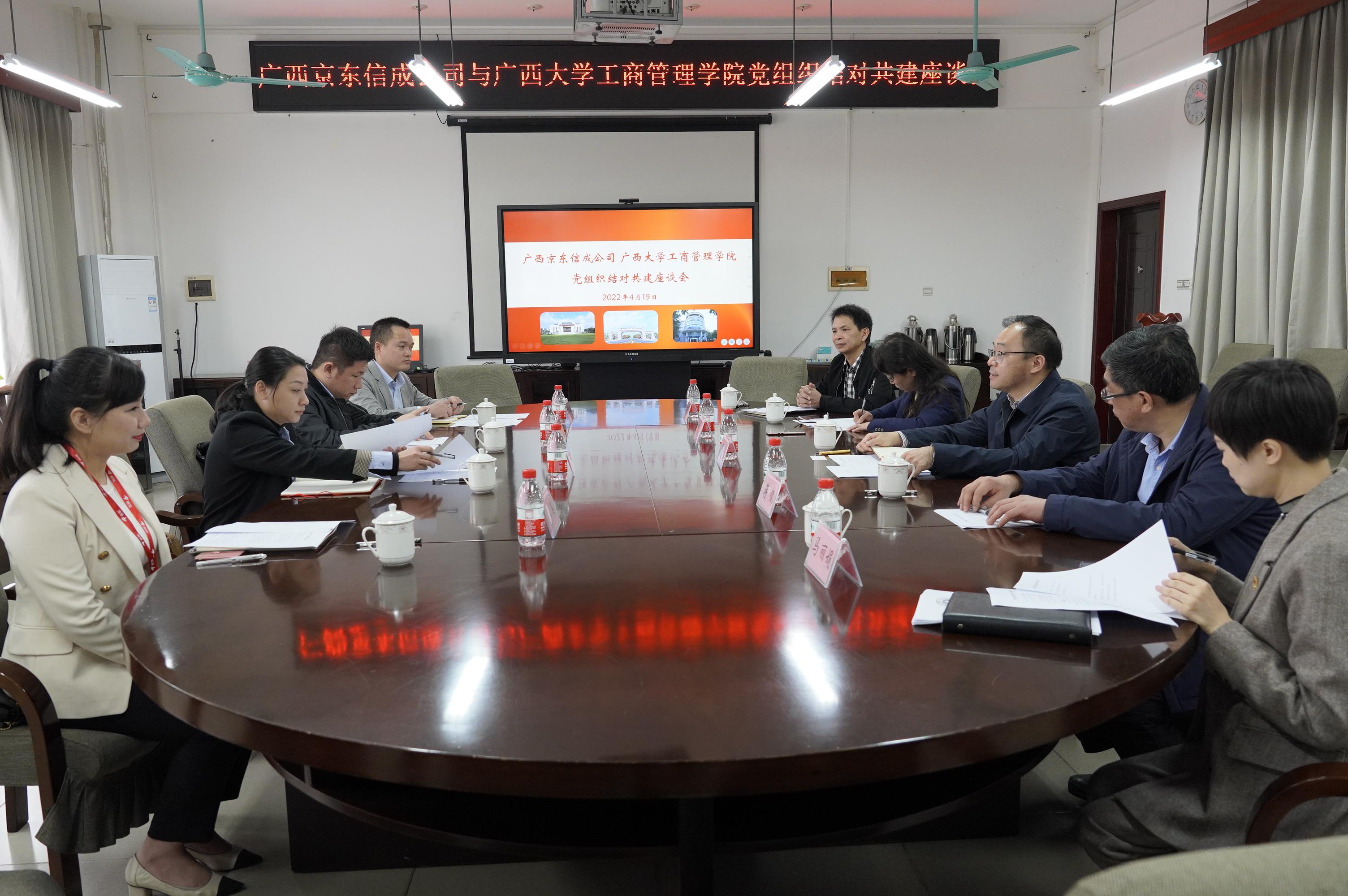 在座谈会上,罗诚书记介绍了学院发展历程和党建做法。他指出,京东集团不仅是我国最具有影响力的综合电商之一,也是一家具有强烈社会责任和家国情怀的民族企业,在历次疫情援助中挺身而出、担当敢为,值得全院师生学习。此次与广西京东信成公司党总支协商开展党组织联学共建活动是党的基层组织建设创新实践形式之一,共建双方可依托彼此优势,以共建促党建,以党建促发展,以发展强党建,在数字经济、智能物流等领域方面开展多层次、多项目的合作共建,互促互进。