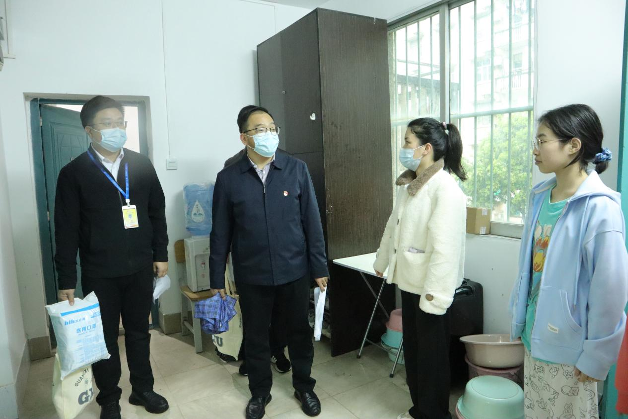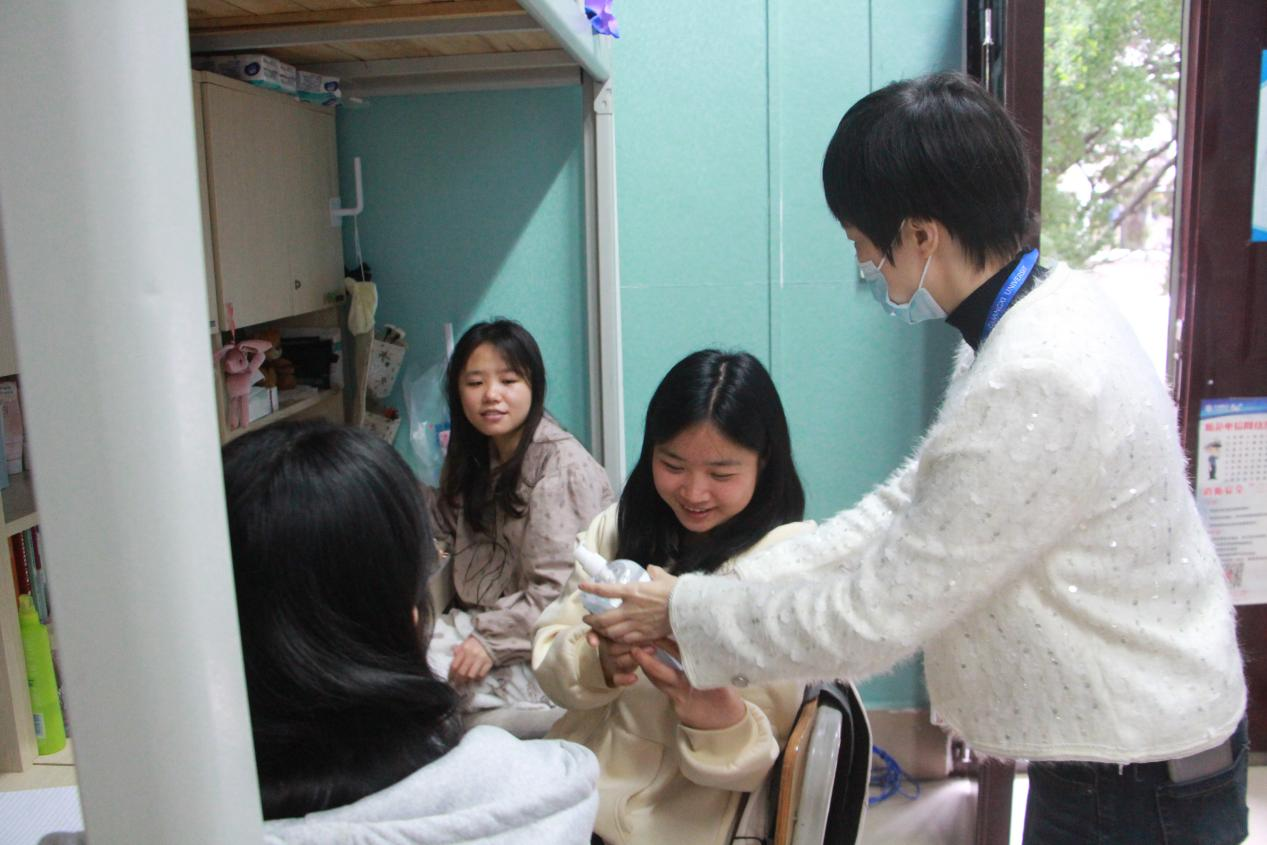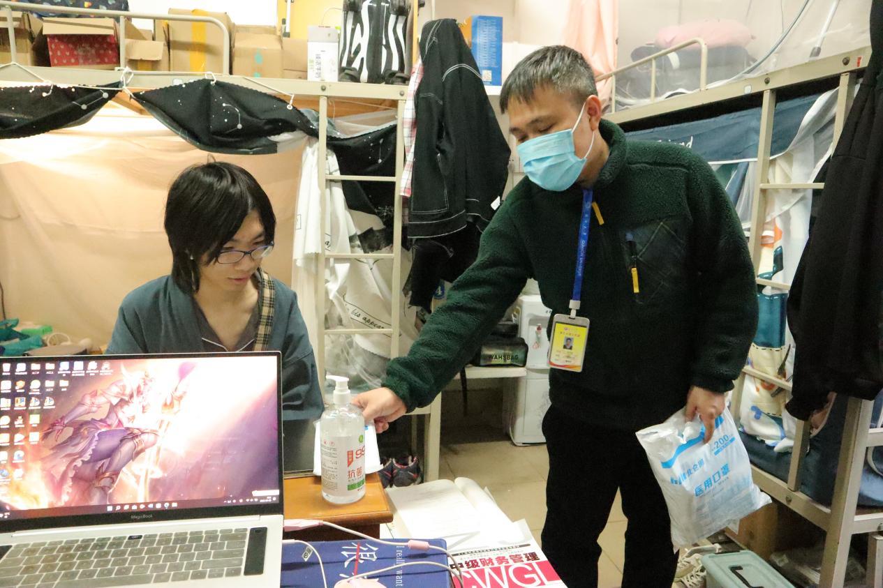学工组老师们到宿舍看望学生并发放防疫物资