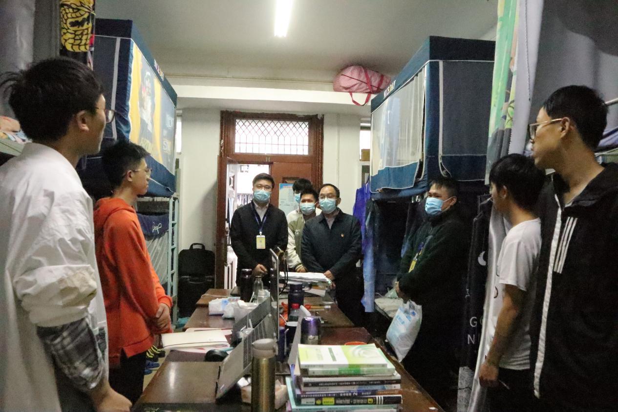 罗诚书记(右四)、黄晋副书记(左三)到宿舍看望学生