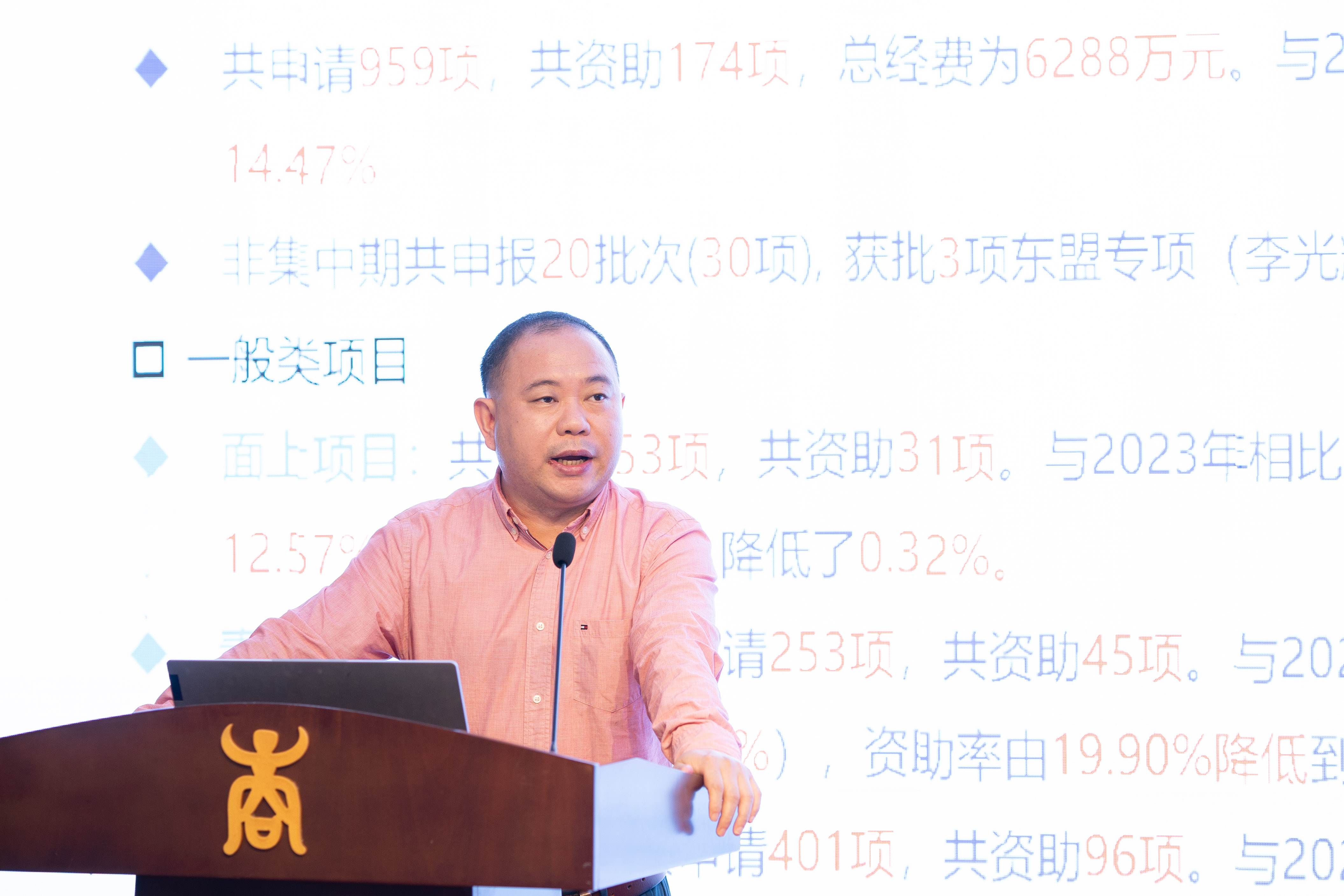 刘民坤副院长对学校和学院2024年各类国家基金项目申报的数据进行了分析和对比说明,指出学院当前国家基金项目申报存在的问题,提出了2025年的申报举措,同时对本年度国家基金项目申报进度安排进行了详细讲解。随后,胡明明老师、孔庆民老师和潘柳芸老师就项目申报经验进行了分享。