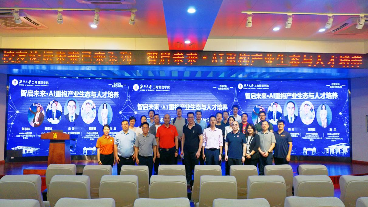 于近日成功举办“智启未来·AI重构产业生态与人才培养价值”主题论坛。此次论坛邀请EMBA校友、专家学者及170余名在校师生齐聚一堂,共探AI技术赋能产业转型与校企协同育人的实践路径。