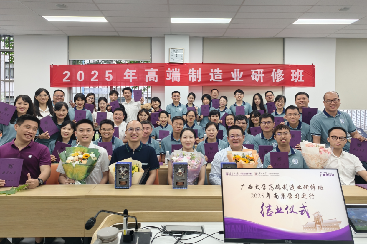 仪式最后,学员们接过结业证书,标志着此次研学之旅圆满收官。大家纷纷表示,将把南京大学的知识积淀与产业洞察转化为实践动能,积极投身八桂大地高端制造业的创新发展,为区域经济高质量发展贡献智慧与力量。