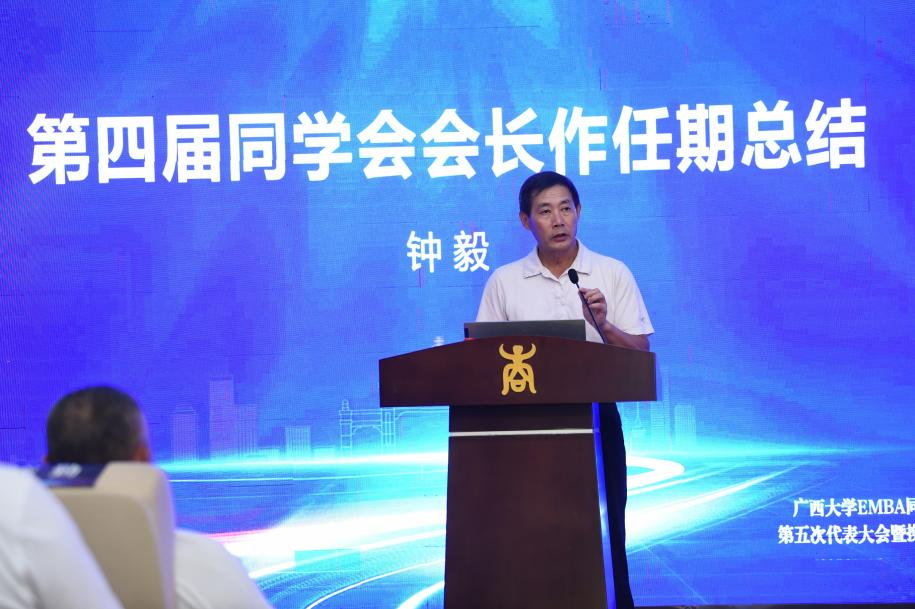 在换届大会上,校党委副书记宁旭初代表学校向EMBA校友长期以来对母校的关心和支持表示感谢。他与校友们分享了学校在融入国家和区域发展战略、增强服务广西经济社会发展效能上取得的重大标志性成果。他强调,校友是母校宝贵的财富,是推动学校高质量发展的重要力量。学校历来重视校友与社会服务工作,将持续为广大校友搭建更多合作平台、提供全方位服务。他希望校友会严守意识形态阵地,筑牢思想引领根基,以校史校训为精神内核,汇聚起向上向善的校友力量;凝聚校友合力,共筑发展共同体,形成校友与学校双向价值共创的良性循环;聚焦服务赋能,提升校友价值,为建设壮美广西贡献西大力量。
