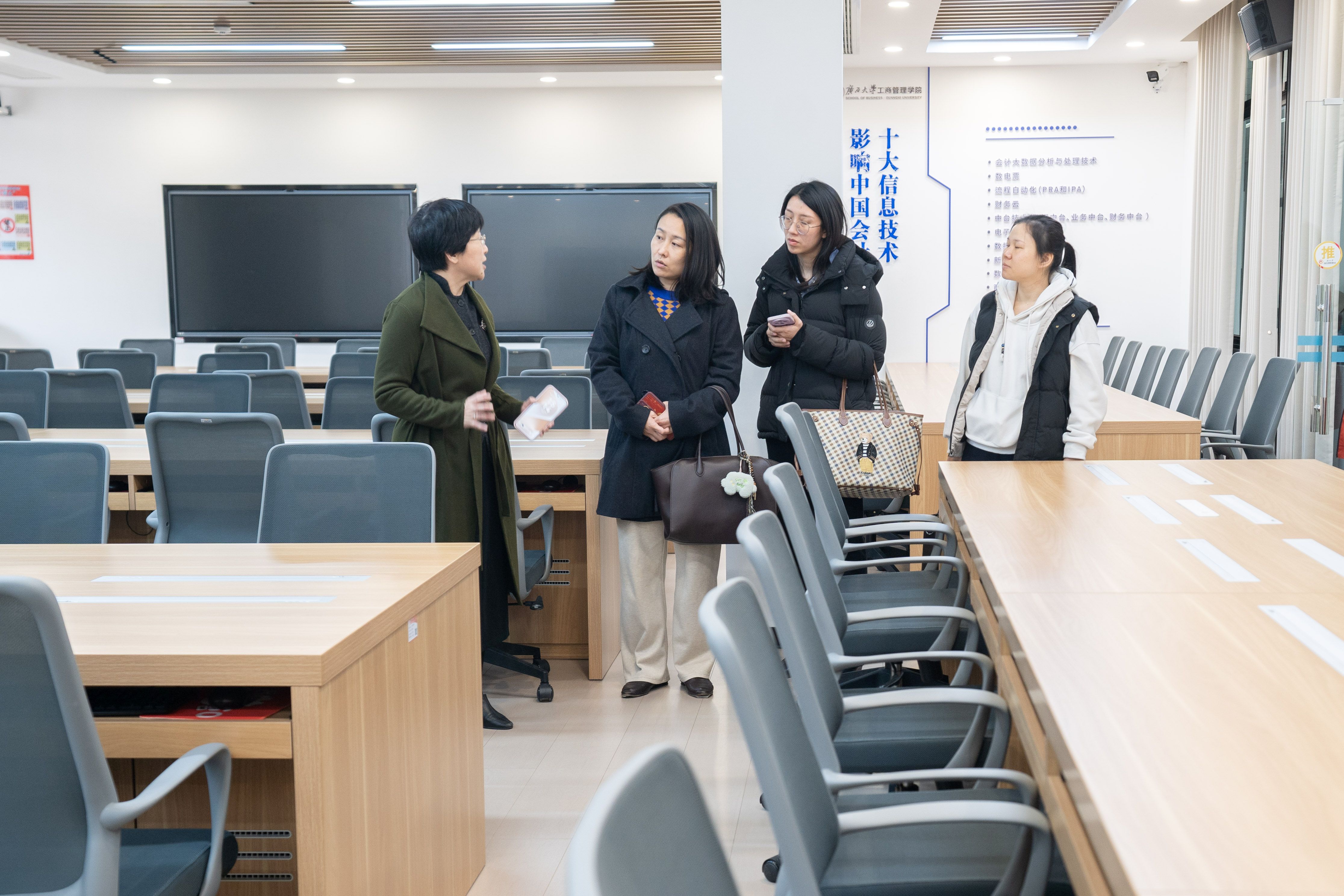 调研交流,院长朱帮助、副院长廖东红、院长助理蒋侃在420会议室与来宾座谈。学院相关部门负责人及相关专业教师代表参加座谈。