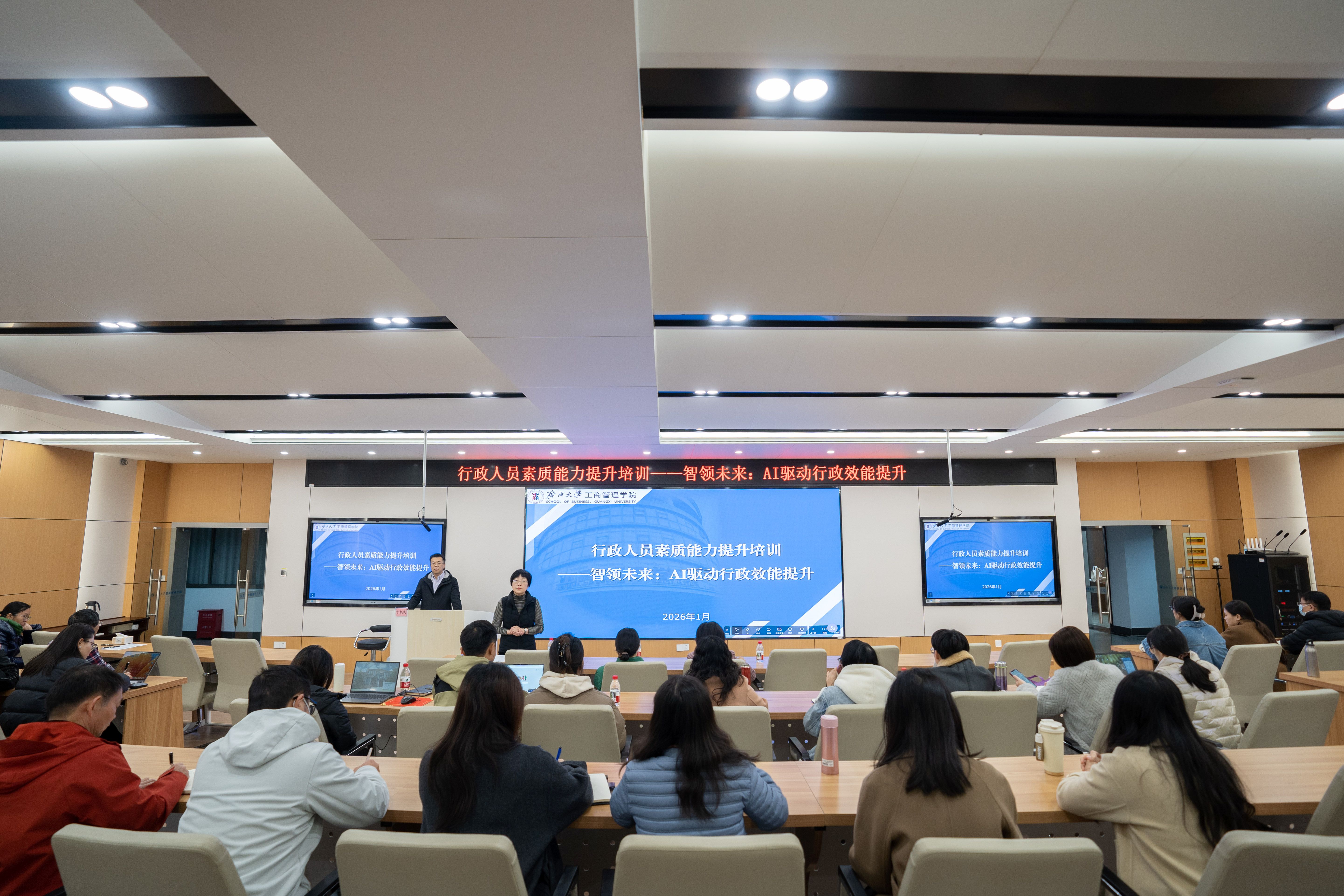 全体行政人员带来一堂主题为《智领未来:AI驱动行政效能提升》的专题培训课。副院长廖东红出席并主持培训,全体行政人员参加培训。