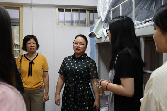 学院副院长朱少英、研究生管理中心主任叶映、年级辅导员张艳红以及新生班主任等领导老师前往2023级研究生新生宿舍进行走访,向新生们致以热情的欢迎和亲切的问候。她们询问新生们在生活方面的适应情况以及遇到的困难和问题等,并耐心解答学生们提出的各种问题,深切叮嘱了同学们注意寝室用电安全,注重维护整洁的寝室环境,合理调整好自己的心理状态和生活节奏,及早做好学术科研上的规划,为刚进校园的学生们送去了温情的关怀。