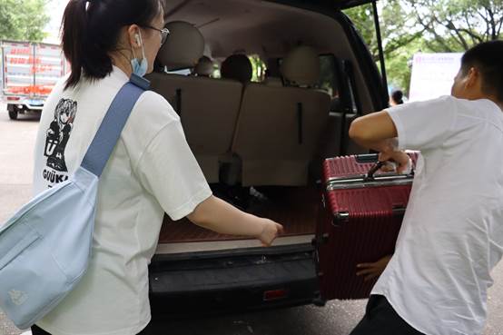 迎来了八百多位新生以及他们的家长,为帮助行李较多的学子安全便捷的到达宿舍,学院特地安排两辆专用车在学院门前守候,来回搬运行李,只为向商管新生们提供最贴心的帮助。