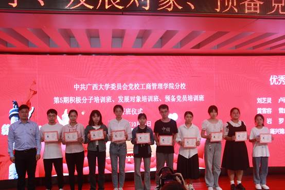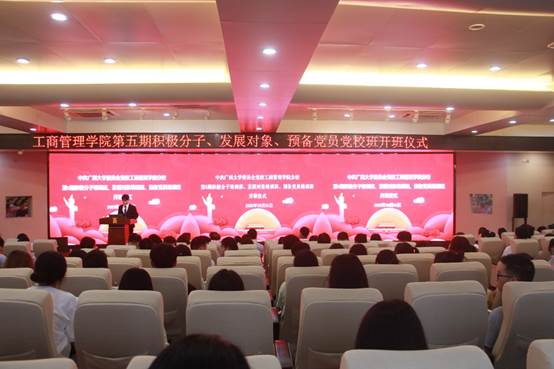 分党校第五期党校班开班仪式在学院128报告厅举行。学院党委副书记黄晋,院党委专职组织员黄照温、院团委书记马丽娟、院团委副书记岑汉成、学工组辅导员王乐、以及来自入党积极分子党校班、发展对象党校班和预备党员党校班的学员160多名代表共同参加开班仪式。