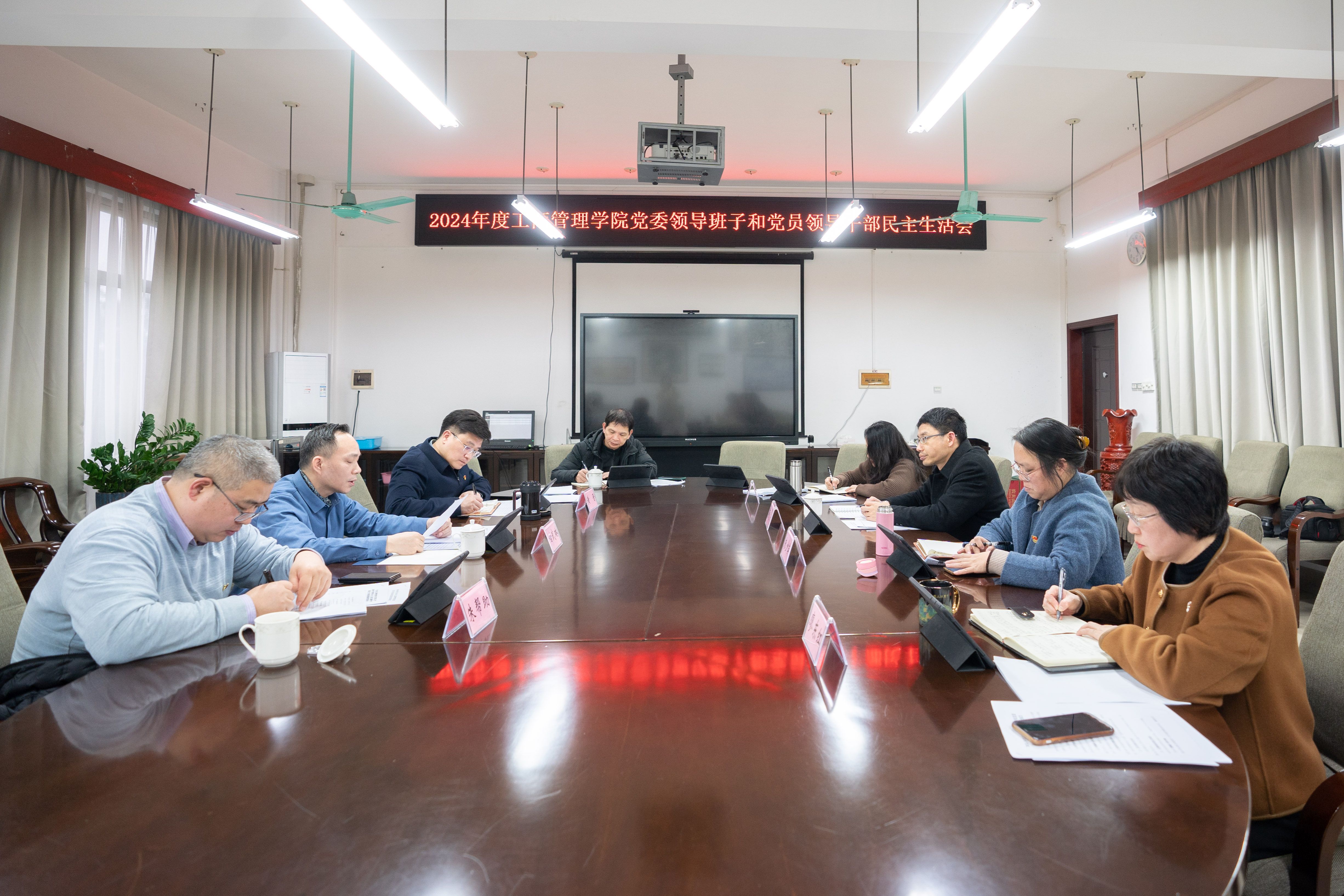 党委领导班子召开2024年度民主生活会,学院党委书记黄晋主持会议并作总结讲话,学校党委督导组、驻校纪检监察组办公室主任甘武琳到会指导,学院党委领导班子成员参加会议。