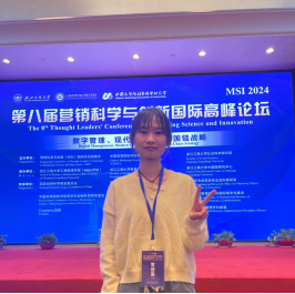 2022级研究生雷璧蔓作为本次会议研究生代表之一参会并作报告,其报告论文题目为:他们吸引了我!化身作为代言人对Z世代旅行意图的影响研究(They attract me! Examining the role of avatar endorsers on Generation Z travel intentions)。该研究引入精细加工可能性模型,探究化身作为目的代言人对Z世代旅行意图的影响机制和边界条件。研究假设,当外表看起来更像人类的化身采用理性的叙述方式时,Z世代的旅行意图会更加积极,因为这增加了信息的可信度;当外表拟人化程度较低的化身采用情感的叙述方式时,Z世代的旅行意图会更加积极,因为这带给个体积极的情感强度。此外,上述影响在只在个体对化身的预期水平较低的情况下发生,当期望水平较高时,这种效应就变得不会过于显著。研究通过操纵不同外观的化身以及叙述方式,通过3个实验,验证了上述假设,为旅游目的地营销的理论研究与实践应用作出了贡献。本次参会得到换妻游戏