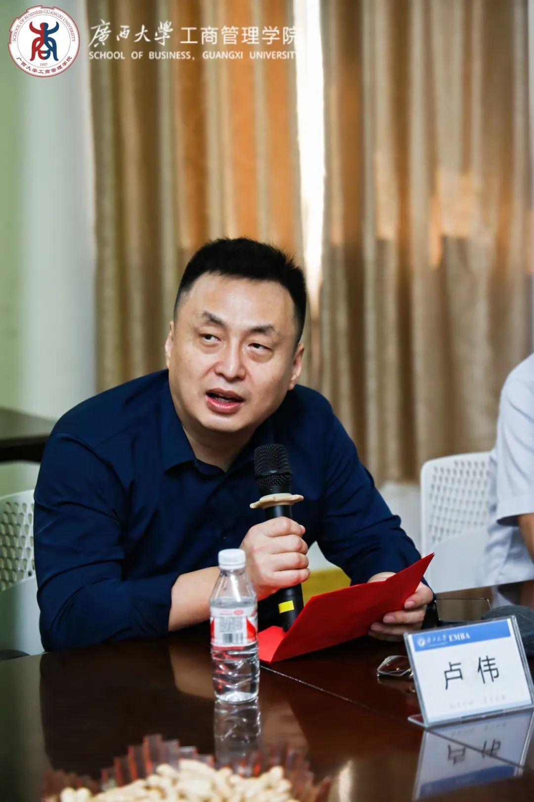 EMBA十三班班长卢伟代表班级向辛勤付出的老师们致以崇高的敬意和衷心的感谢。他回忆了两年在校期间开学拓展、上课和课后活动的点点滴滴。他表示,五年后重返校园,欣喜地看到学校、学院日新月异的变化,祝愿学校加快建成特色鲜明、国内一流的综合性研究大学,祝愿学院早日跨进新时代一流商学院,祝愿换妻游戏