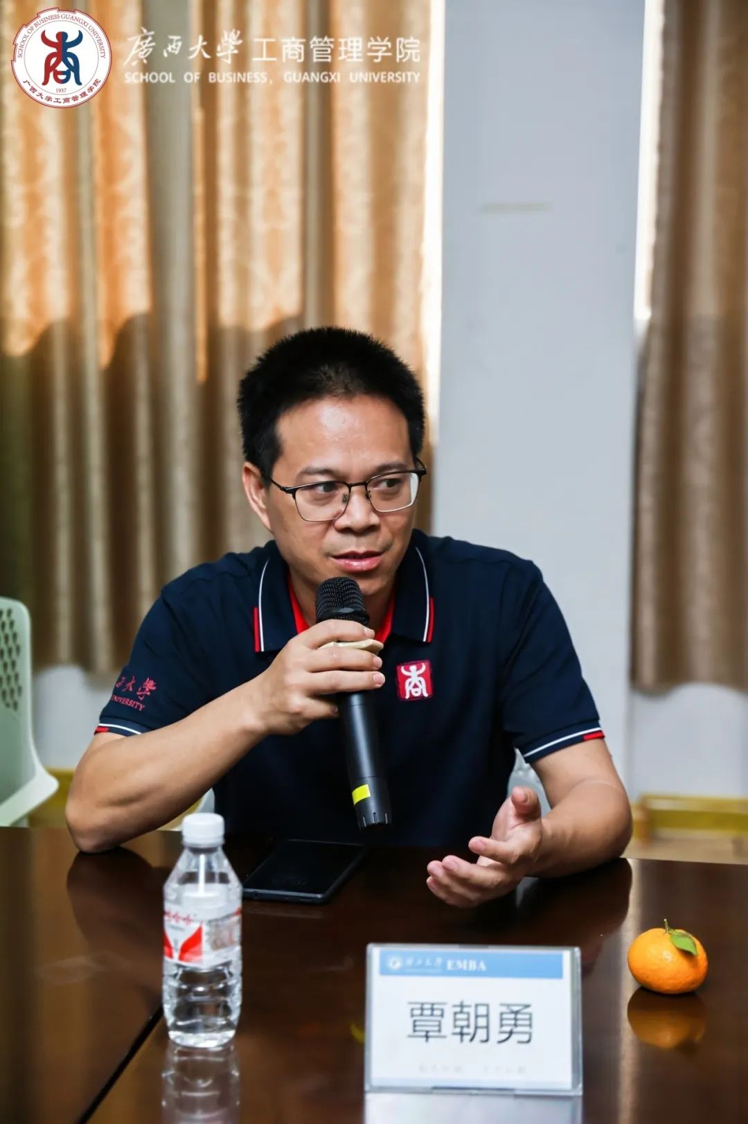 EMBA十三班校友毕业五周年返校座谈会在学院516教室举行。学院副院长朱少英、学院校友工作与政企服务办公室主任覃朝勇、EMBA授课教师代表黎鹏教授等学院领导、老师出席了本次座谈会。EMBA教育中心主任宁雪莲、EMBA十三班校友杨森主持座谈会。