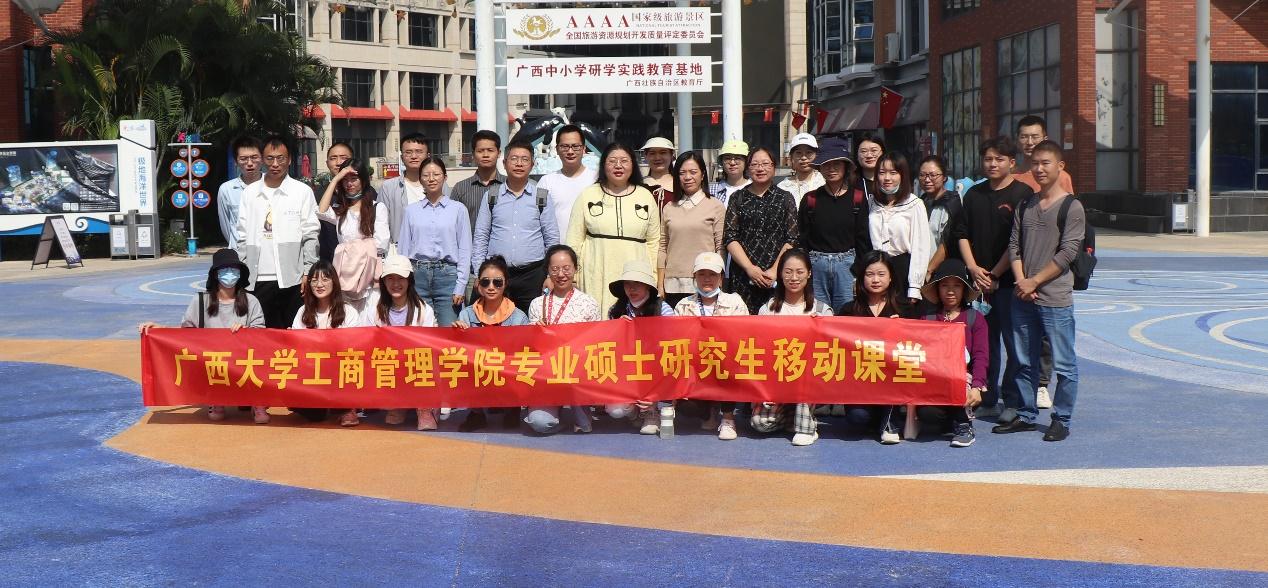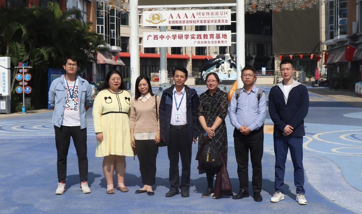 郭峦教授、林轶教授、胡明明副教授、阳月星老师以及2021级旅游管理专硕(MTA)同学们的步伐。走上移动课堂,走进深蓝,走入南宁融晟极地海洋世界,在实践中学习海洋文化的传承和保护之路,探索海洋经济和文旅融合的发展路径。