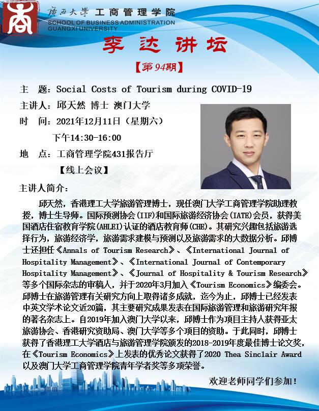 换妻游戏 “李达讲坛”【第94期】:Social Costs of Tourism during COVID-19