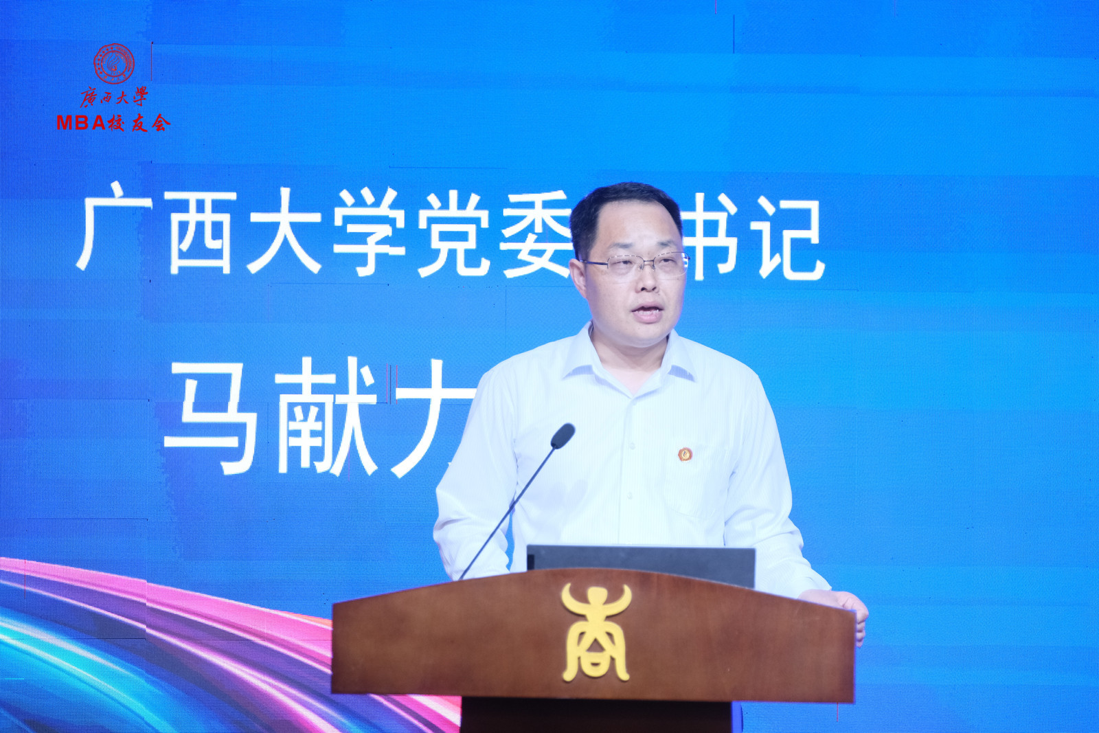 党委副书记马献力代表学校向大会的顺利召开和新当选的MBA校友会新一届组织机构成员表示祝贺,对上一届MBA校友会组织机构成员的付出和全体校友一直以来对母校的关心和支持表示感谢。