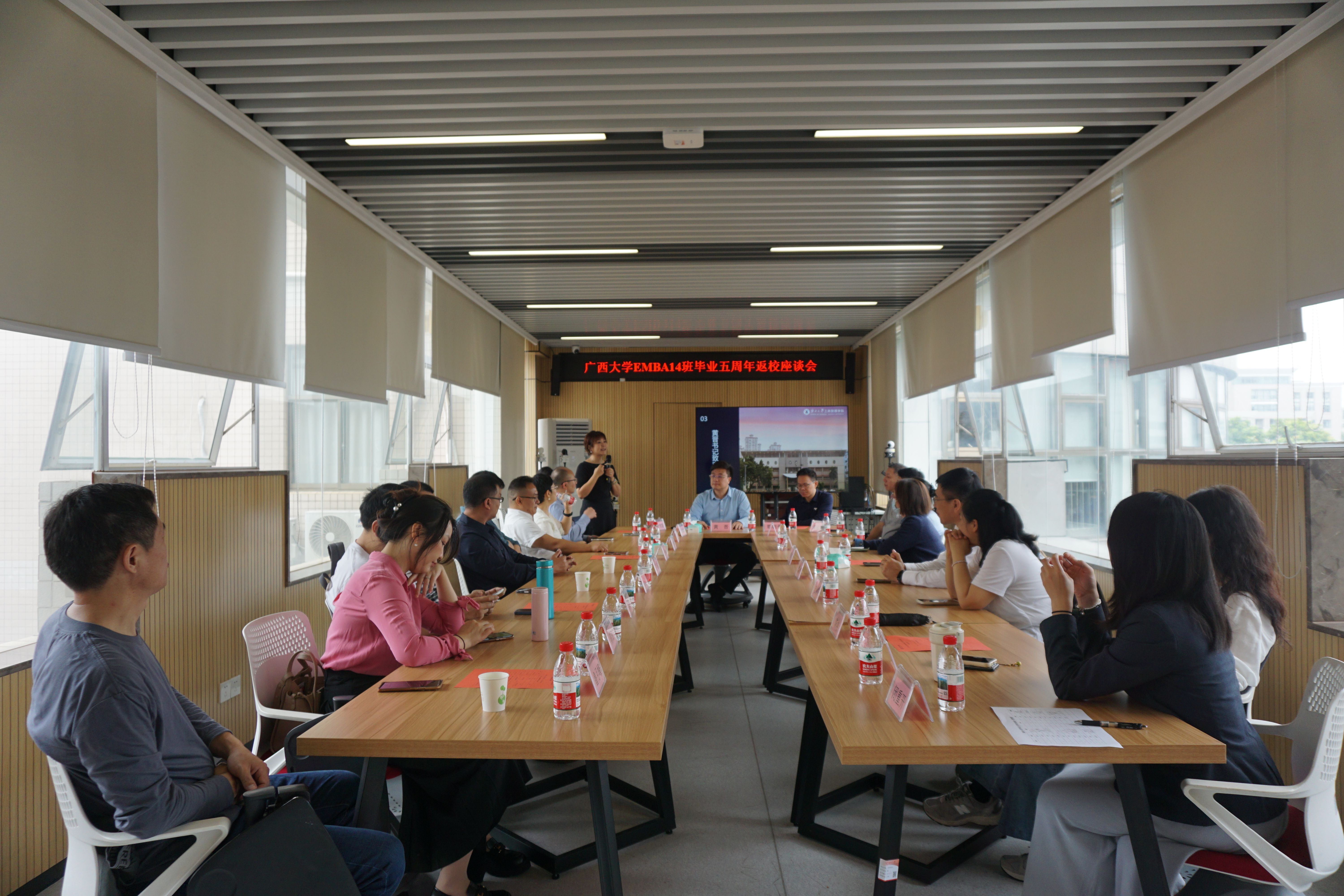 迎来了一批特殊的“家人”—EMBA14班的校友们,在毕业五周年的重要时刻重返母校,共赴一场“重温同窗谊,再启新篇章”的温情聚会。二十余位校友跨越山海,从全国各地奔赴而来,相聚学院500教室,在熟悉的校园中追忆往昔,畅谈当下,共绘未来蓝图。