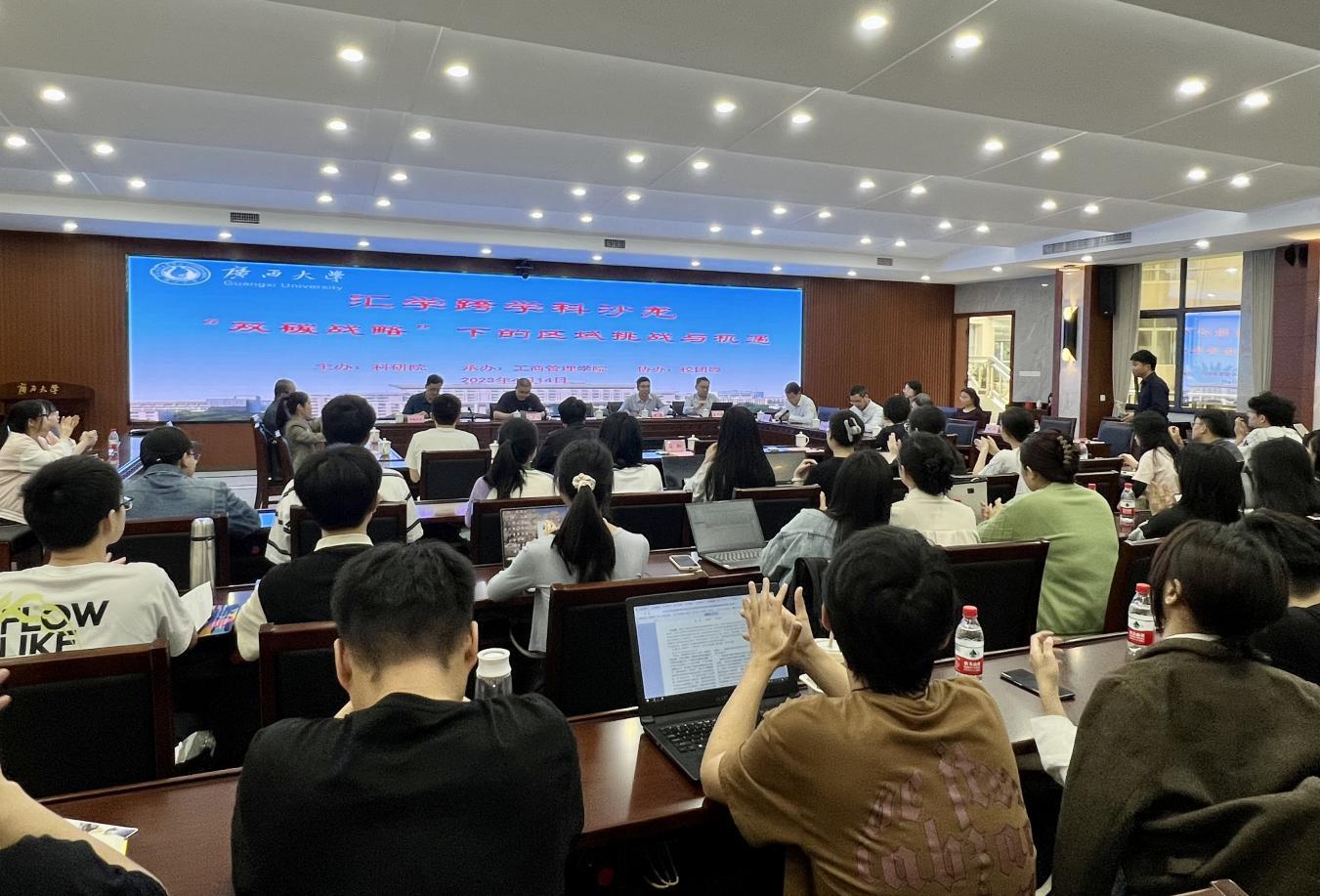 承办的第5期“汇学跨学科沙龙”在君武馆第二会议室举行。与会学者聚焦“‘双碳战略’下的区域挑战与机遇”主题,共同探讨在全球气候挑战加剧的情况下,如何化挑战为机遇,协同推进经济发展、绿色发展和可持续发展。